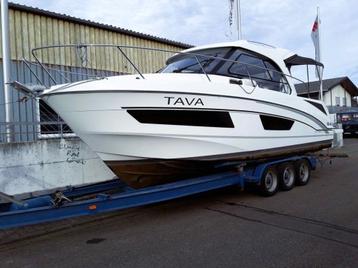 Das Boot sitzt auf einem Stöger Bootsanhänger Typ 2000T