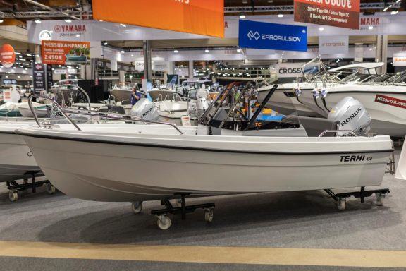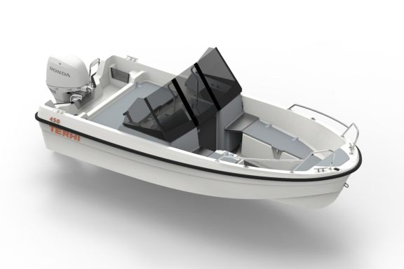 Für einen Rumpf unter 4,5 Metern Länge bietet sie ein außergewöhnlich gut geschütztes Cockpit und großzügigen Stauraum. Speziell für geschützte Transfers zum Ferienhaus, vielseitige Transportmöglichkeiten und entspannte Tagesausflüge konzipiert, basiert diese Neuheit auf dem Rumpf der Terhi 450, der für stabile Fahrten und hohe Zuladungskapazität sorgt.